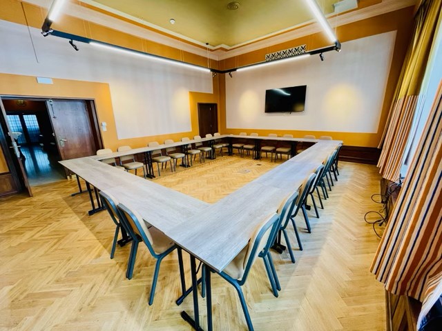 Avec tableau et facilité de projection. Capacité: 20Prix: A partir de € 600/demi journée - € 1100 / la journéeMatériel techique sur demande: Ecran digital, tableau-papier, accès WiFi, ordinateur(s), restauration sur demande.
